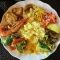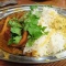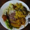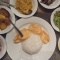 全体的に薄味に仕上がっており、赤米と混ぜた上でチキンをほぐしたものやパパドで塩分を調整して食べる。